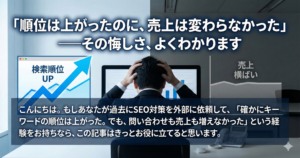 SEO会社は「順位を上げること」が仕事。でも、その先の「アクセスをどう顧客に変えるか」までは専門外です。結果、アクセスは増えても売上に繋がらない…という事態が起きてしまいます。