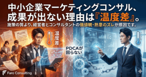 売上を伸ばしたい、顧客を増やしたい――そんな思いでコンサルタントを探している中小企業の経営者の皆さま。「立派な戦略を提案されたが、実行段階で止まってしまった」「高額な費用を支払ったのに、成果が出なかった」このような経験はありませんか?